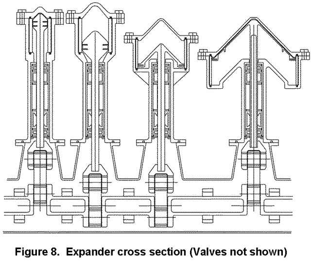 Figure 8 shows a longitudinal cut through the expander. An inline version is shown for convenience, although V and horizontally-opposed options are certainly possible.